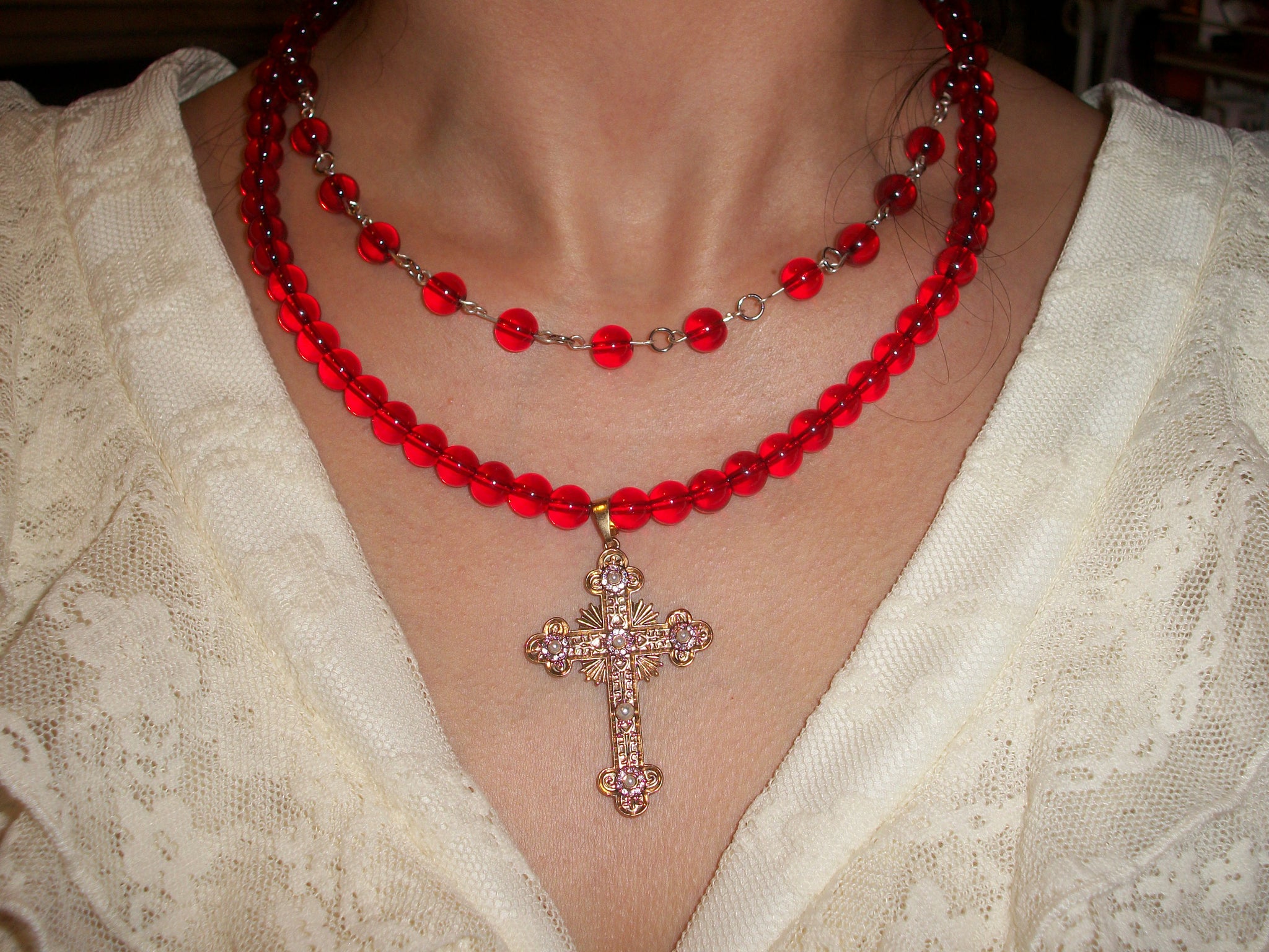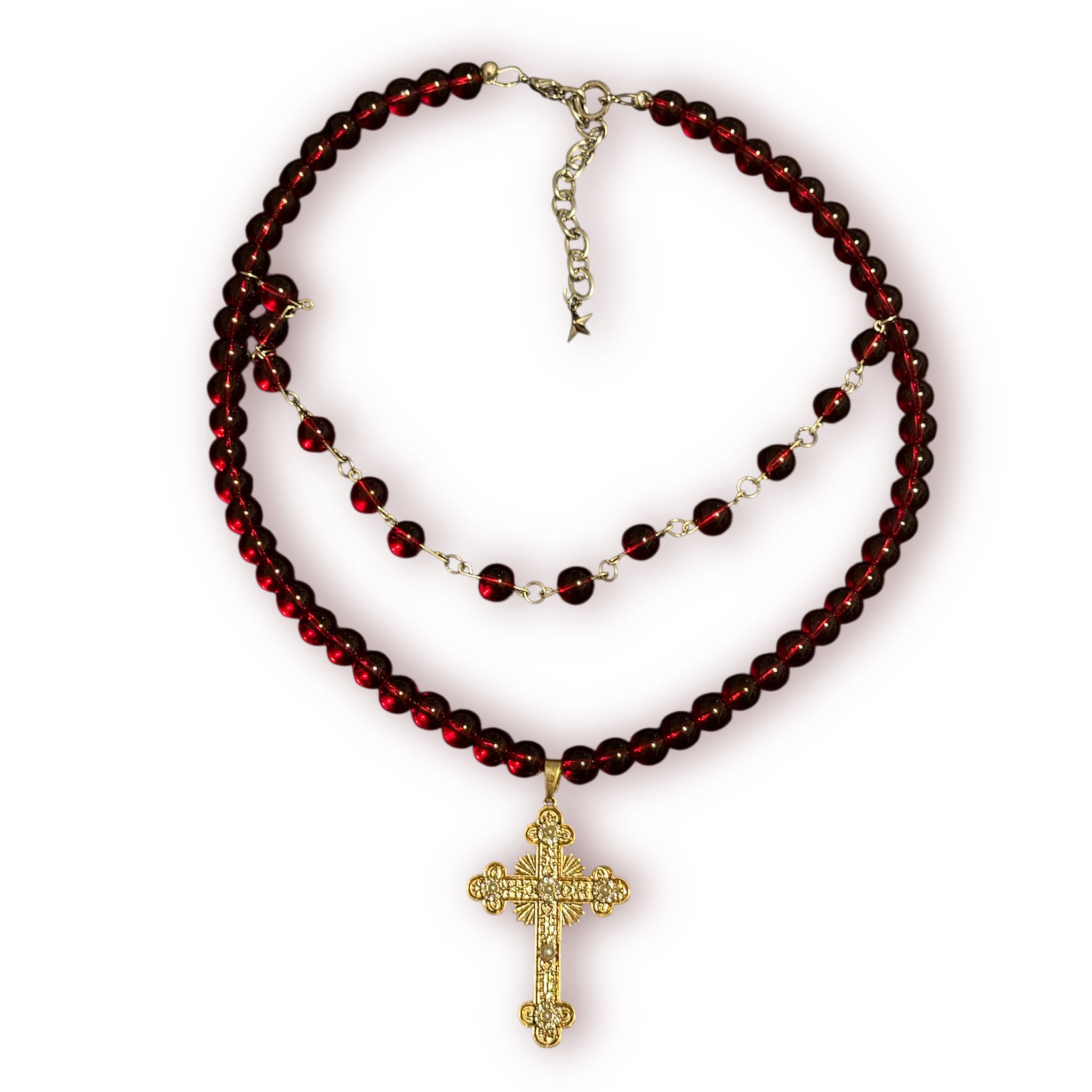 ✧·: *✧ Made with cracked glass beads and a gold rhinestone pendant ✧·゚: *✧